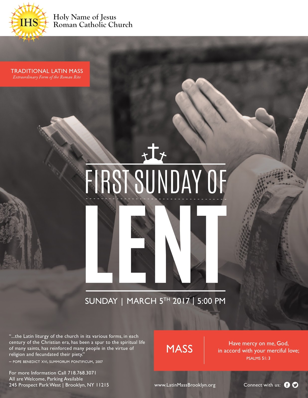 Latin Mass is celebrated every Sunday: Our Lady of Peace, 522 Carroll St, Bkn at 9:30am & at 9:30am at St. Josaphat, 34-32 210th Street, Bayside, Qns. Monastery of Our Lady of Mt. Carmel & St. Joseph Latin Mass at 8:30am, 361 Highland Blvd, Bkn. Divine Mercy Parish Latin Mass, at 7pm at St. Cecilia Church, 84 Herbert St, Bkn. Transfiguration RC Church at 12:30, 64-25 Perry Ave, Maspeth, NY 11378
